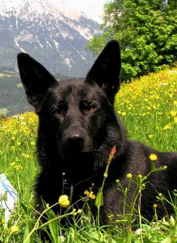 Körbericht vom 16.04.2011 (Körmeister Arth): Groß, mittelkräftig, guter Ausdruck, in sehr gutem Verhältnis aufgebaut. Guter Widerrist, gerader Rücken, Kruppe bei guter Lage etwas kurz, korrekte Front, ausgeglichene Brustverhältnisse, hinten und vorne geradegehend, sehr gute Schrittweite mit wirksamem Nachschub. Sicheres Wesen, TSB ausgeprägt, lässt ab. |