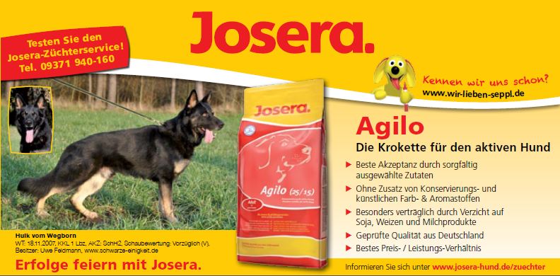 uns zurück: Hulk vom Wegborn (GHK Rüden): V (hier unseren herzlichen Dank an Alexander Thiel!) Qira vom Hessischen-Bergland (JHK Hündinnen): SG |