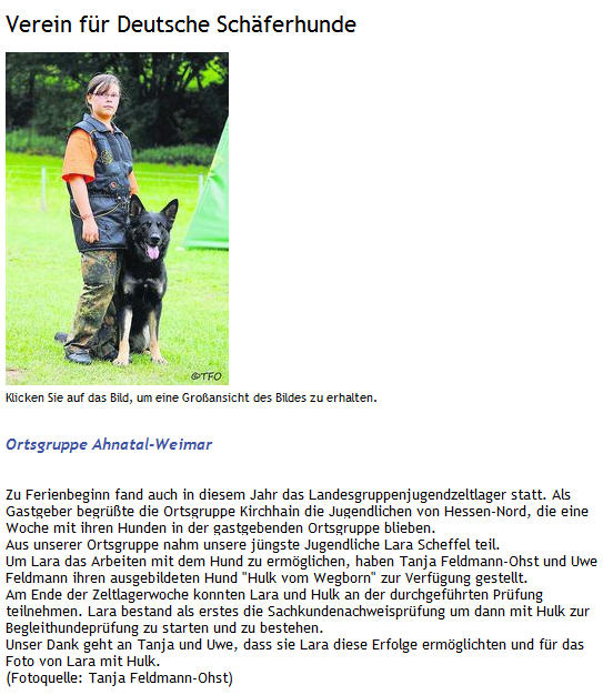 Wir sind zurück aus Borgentreich von der Schau! Hier die Ergebnisse: NWK: Iwy vom Haus Kohlgrund - VV (HF: Alexander Thiel) JHK: Germany von Haus Hartwig - G (HF: Alexander Thiel) (mit diesem Ergebnis sind wir sehr zufrieden, Germany hat die ihr gestellte Aufgabe heute sehr gut gelöst! Wir sind stolz darauf, was die Kleine in den 4 Wochen für einen geistigen Sprung gemacht hat) GHK: Rabea vom Ritterland -> V (HF: Christin Witt) GHK: Hulk vom Wegborn -> V (HF: Alexander Thiel) den beiden HF's gilt natürlich unser ganz besonderer Dank! |