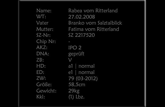 | AT | Pedigree Database | Working Dog | AT (pdf) | | Bildergalerie | Video's | Körschein | Zuchtplanung |